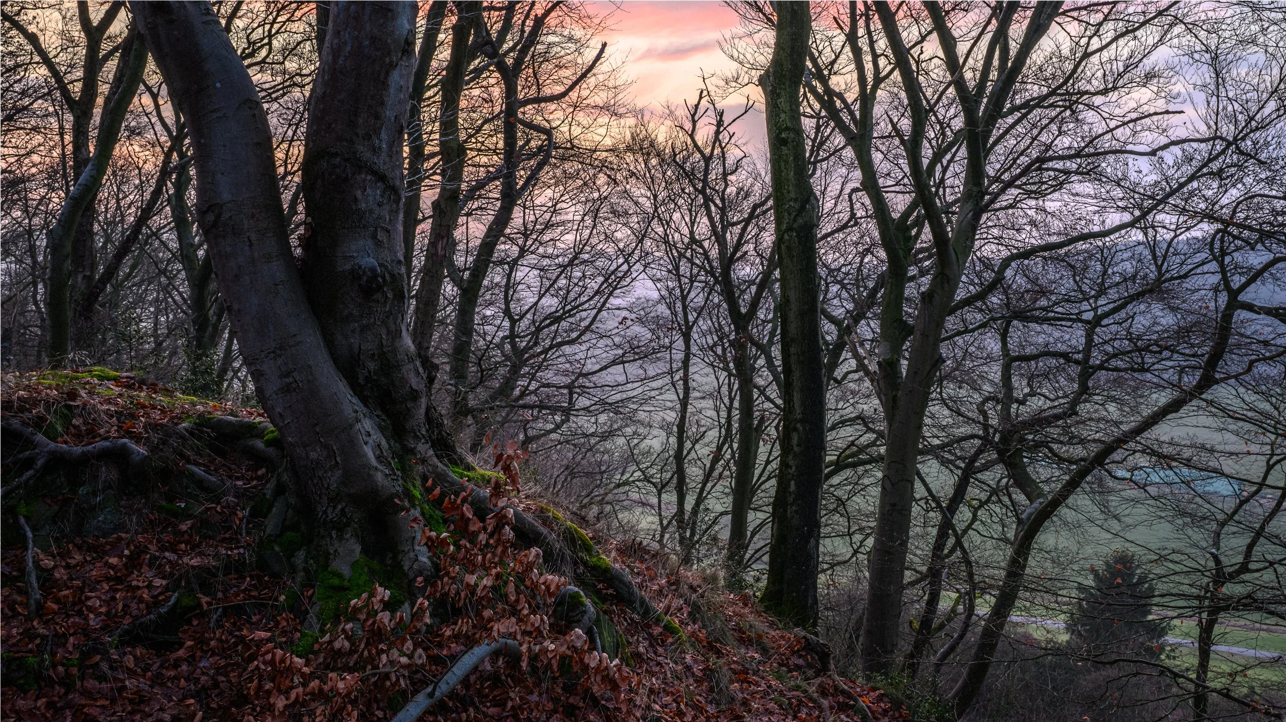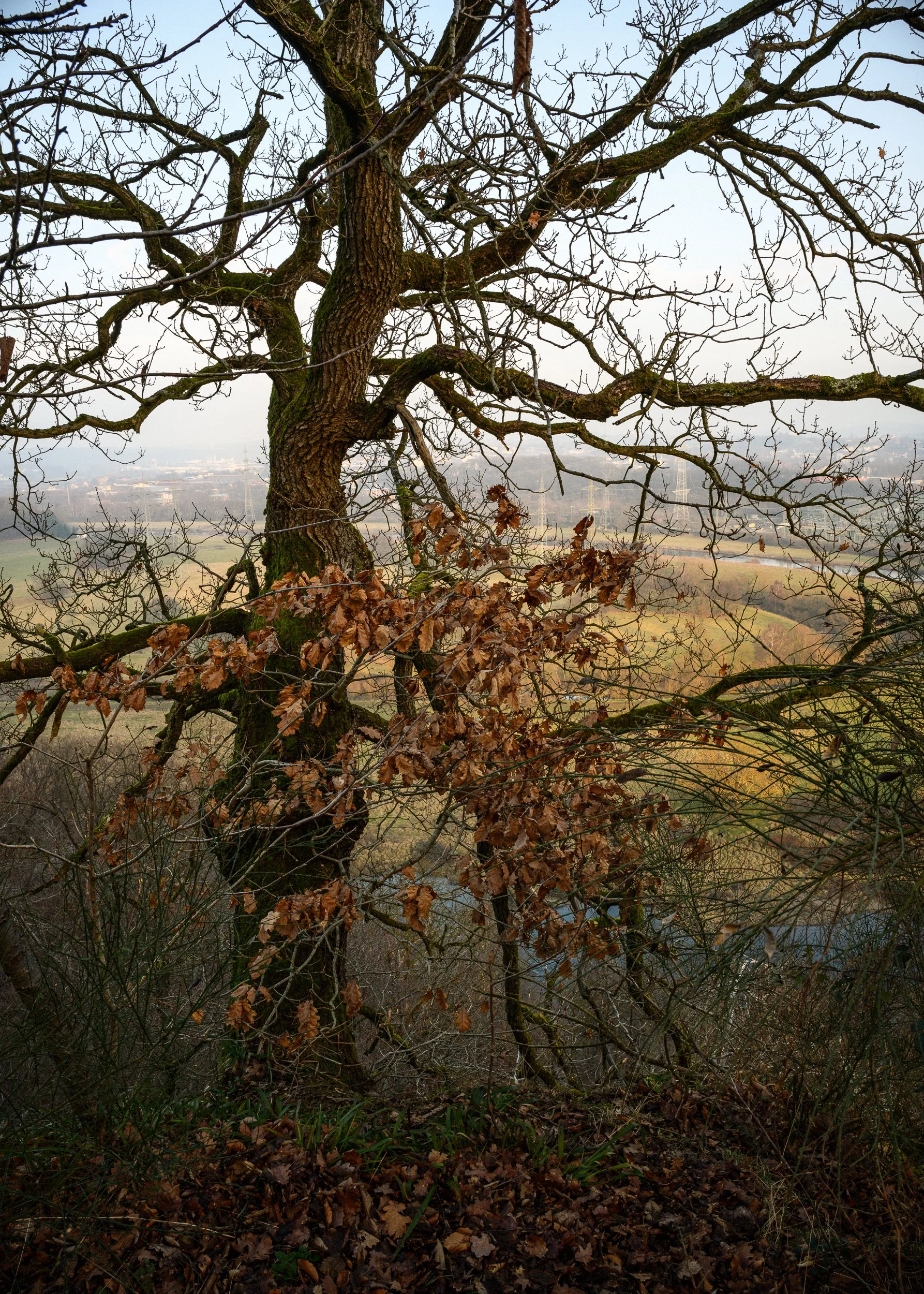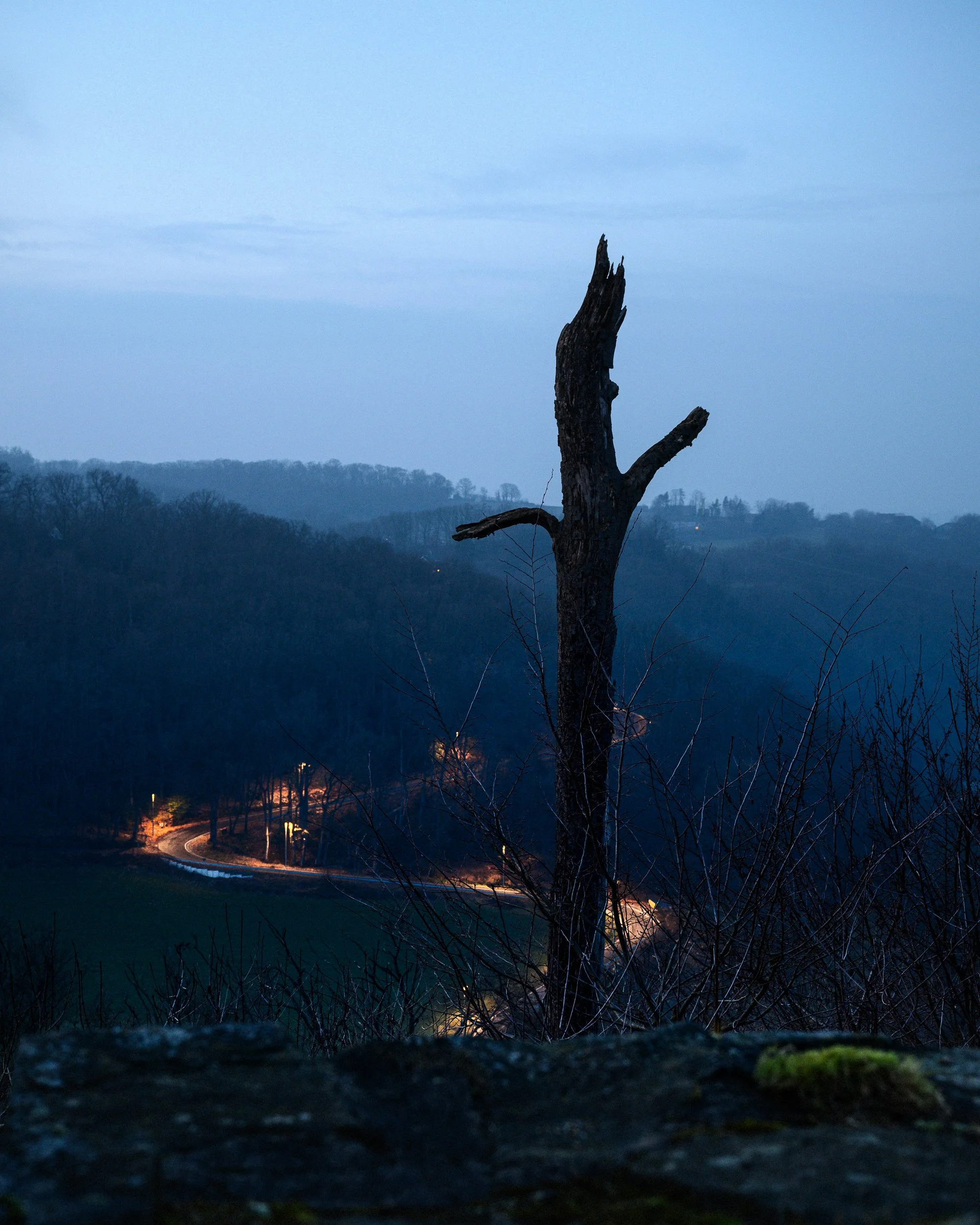 Das Licht der untergehenden Sonne und die den Dunst im Tal konnte ich von hier leider auch nicht nutzen, da ich keine Komposition mit freiem Blick ins Tal finden konnte und der Wald zu dicht, chaotisch und im Vordergrund einfach zu dominant war.