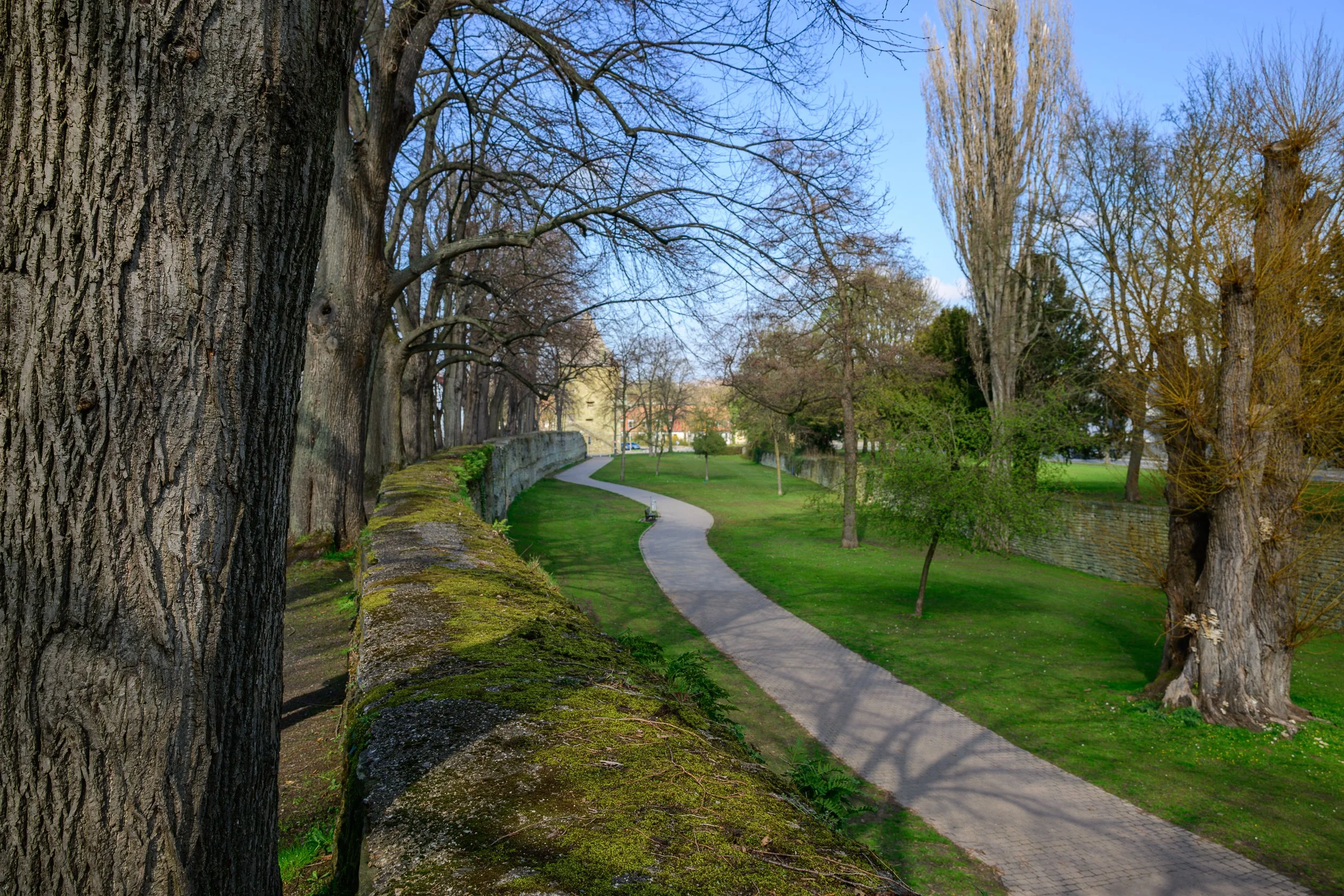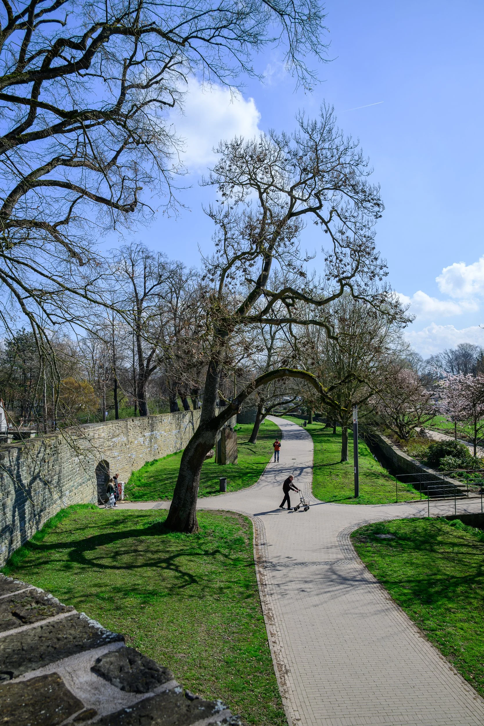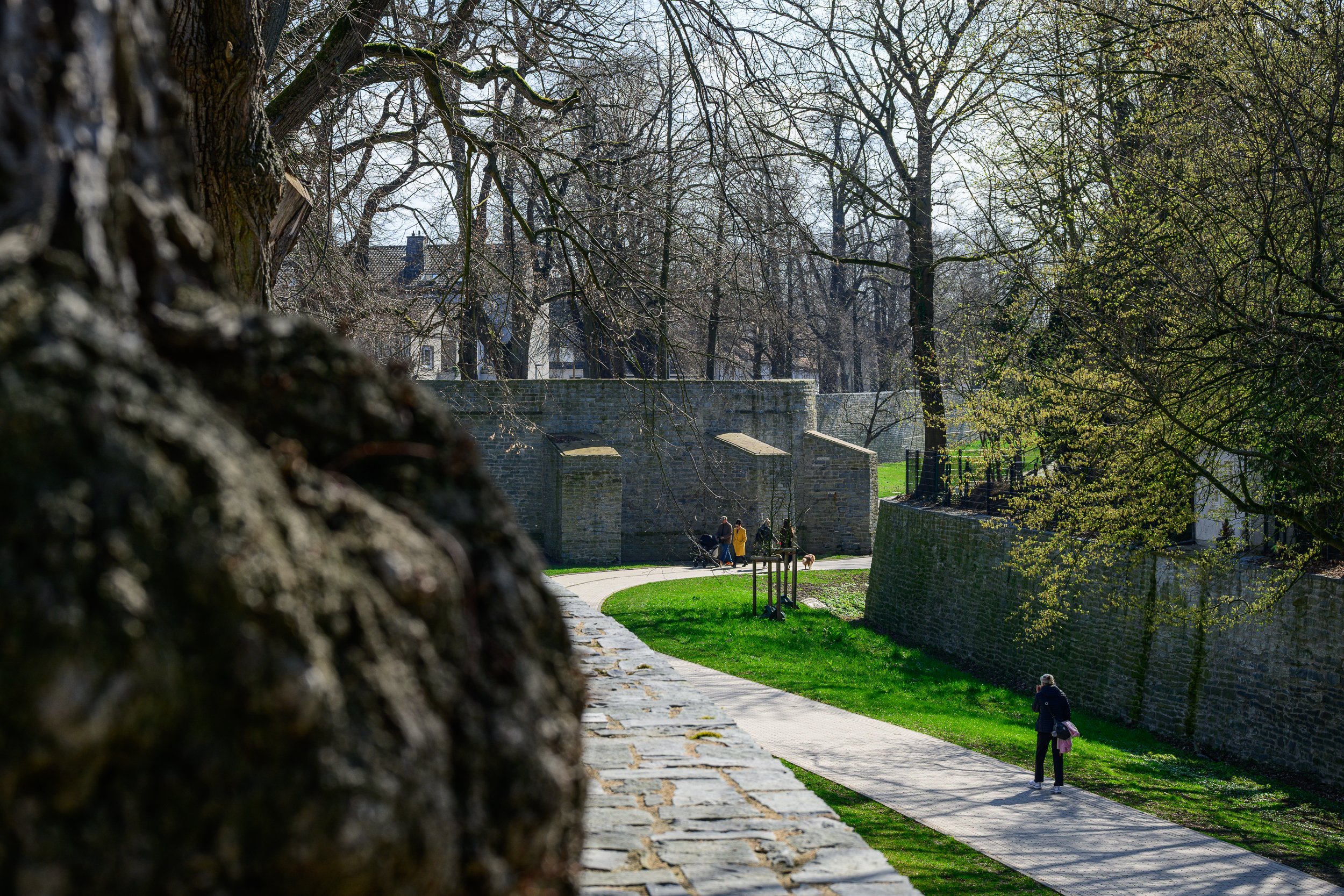 An diesem Tag hatte der Kollege schon andere Termine, so daß wir ohne Insider-Informationen durch die Stadt gewandert sind. Genau genommen sind wird erst einmal auf dem Wall — dessen Ursprung bis ins 12. Jahrhundert zurückreicht — um den Stadtkern herum gewandert. Der umschließt auch heute noch gut drei Viertel der Innenstadt.