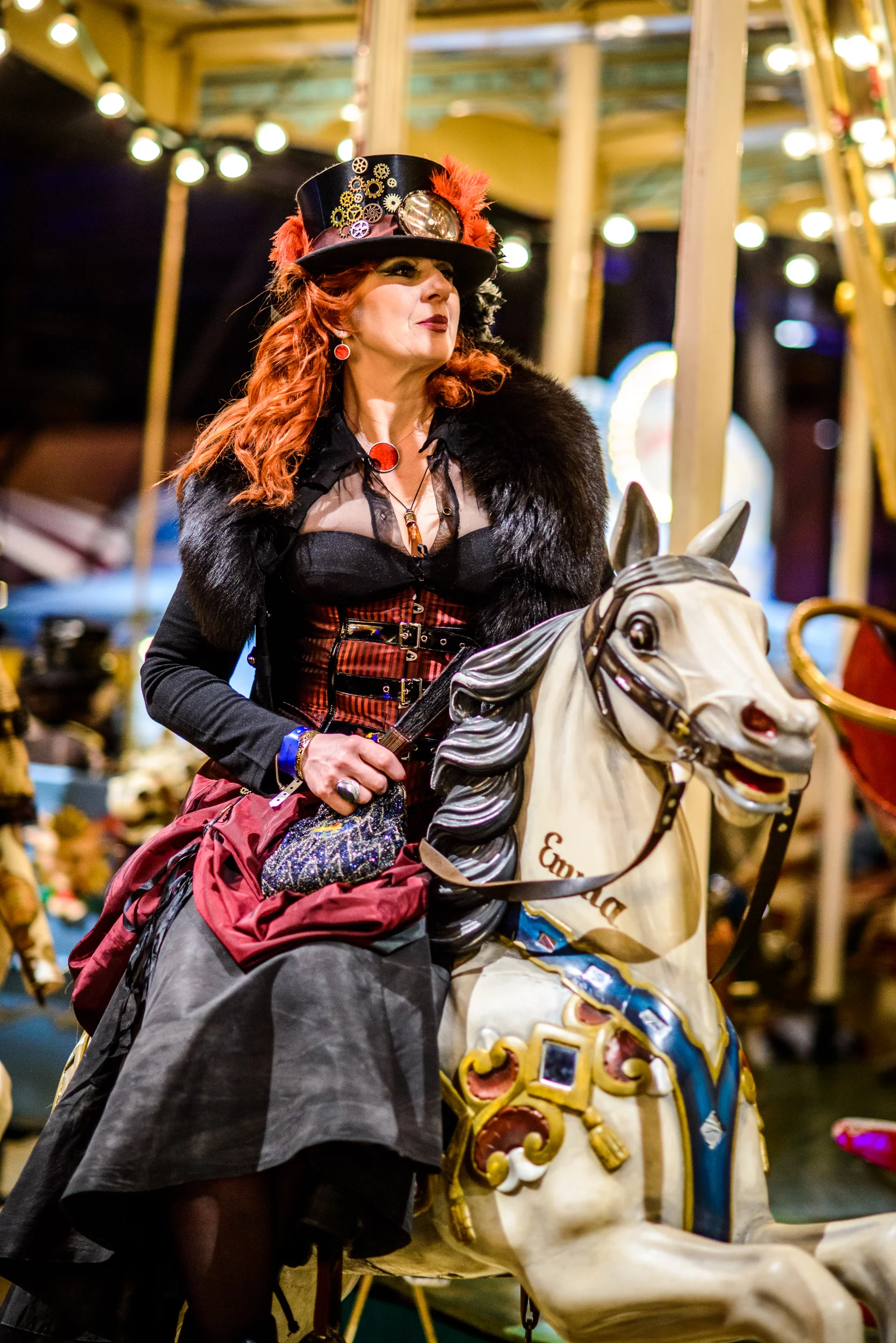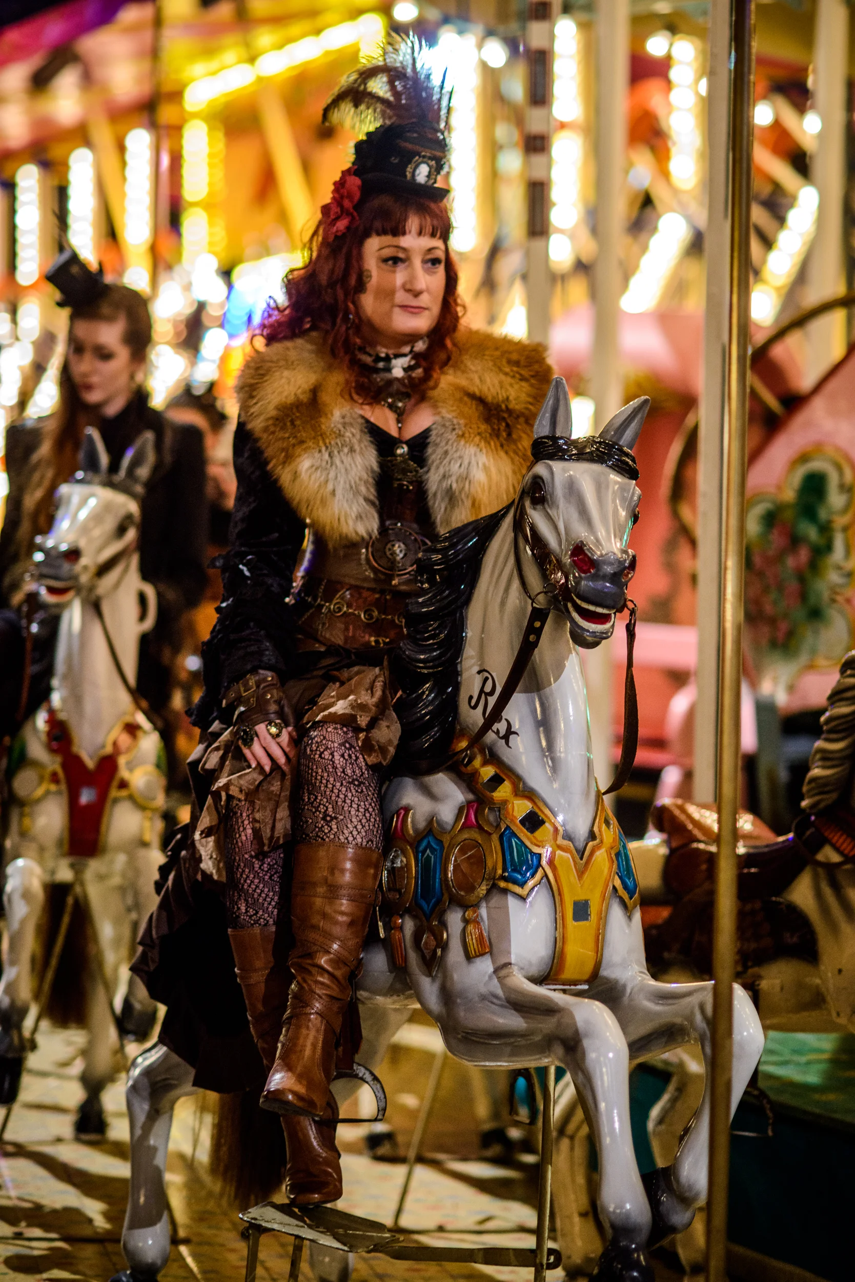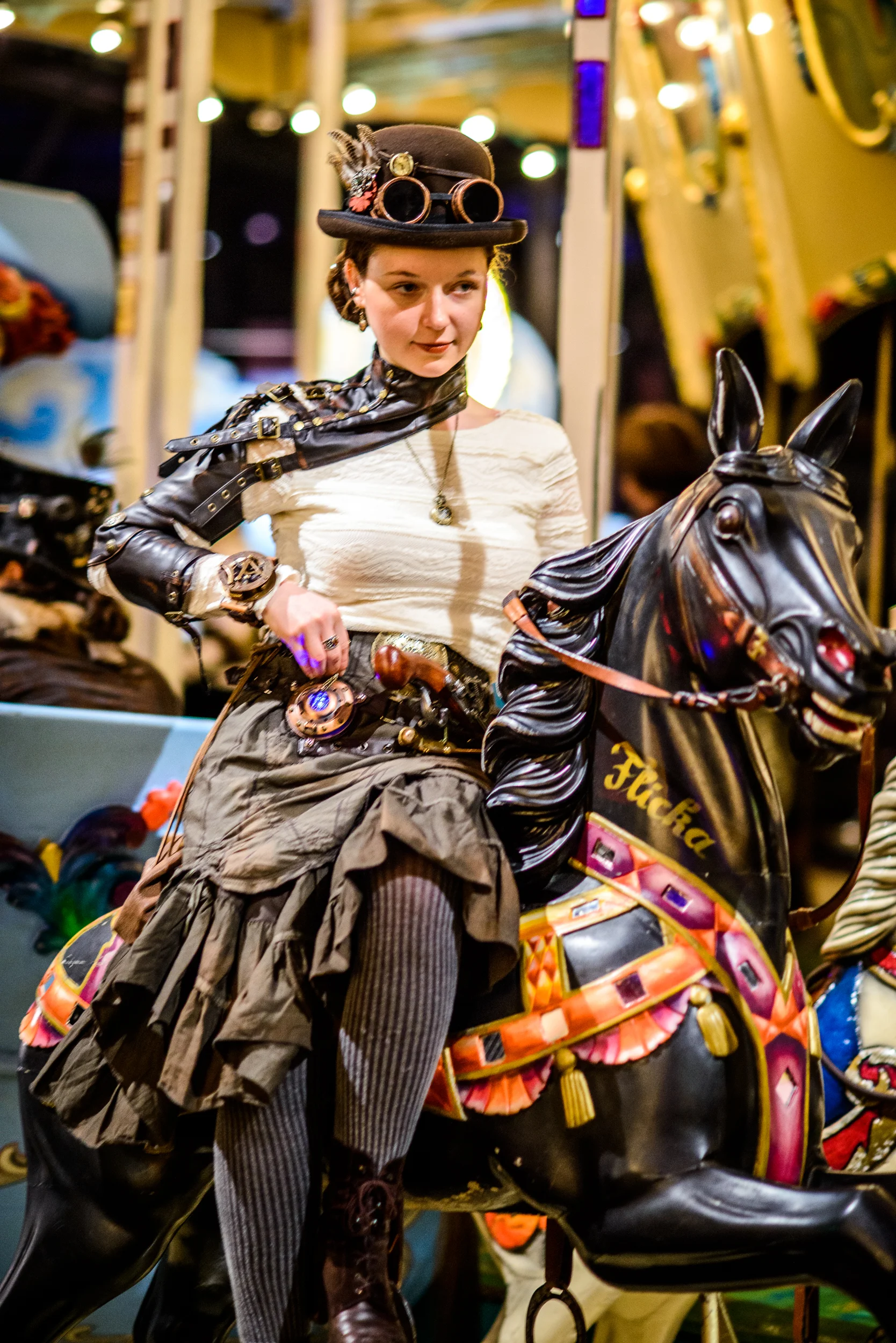 ...fand am letzten Wochenende der Steampunk Jahrmarkt in der Bochumer Jahrhunderthalle statt. Wegen des großen Erfolges im letzten Jahr wurde der Steampunk Jahrmarkt zeitlich ausgedehnt, so dass er schon um 10Uhr startete und erst um 01:00 endete. Außerdem war die Zahl der Händler erheblich größer als im letzten Jahr. Leider waren dafür die Stände der Aussteller, die ihre (unverkäuflichen) Kreationen präsentieren so gut wie nicht mehr vorhanden. Schade, denn ich finde, dass macht einen wesentlichen Aspekt der Szene aus.